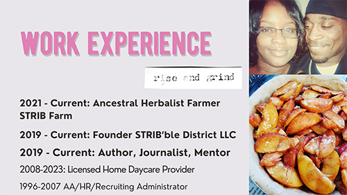 LaWann Stribling is the visionary founder of STRIB’ble District LLC, Cann’A Woman Heal Wellness, STRIB’ble Treats, and STRIB Ancestral and Holistic Farm. As a full-time ancestral and holistic urban farmer, herbalist, baker, and gardener, LaWann has dedicated her life to nurturing both the land and the community. With a background as a licensed early childhood educator, she teaches gardening with kids courses, self-worth and sustainability, whole food cooking courses, and wellness management using nature.